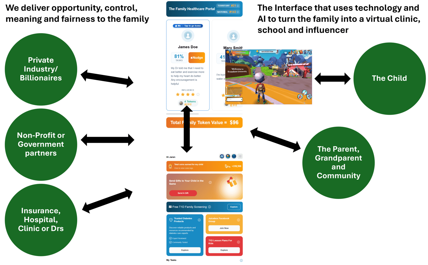 With the free platform that we have created, tested and proven to work, this is a family-driven, game-based, AI and tokenized life-skills learning platform that delivers a simple change in how we look at things and how doing the little things every day add up to make a huge difference.